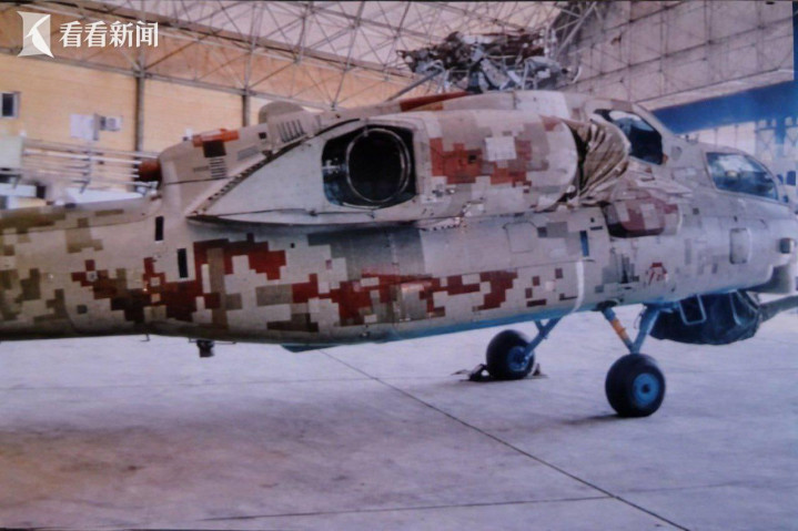 照片中,这架直升机身披数码迷彩,与“军队-2018”论坛上展出的米-28NE涂装相似。照片中的这架直升机没有桨叶,易损部位被特殊防护罩包裹。这表明直升机可能刚刚运到,尚未投入使用。消息人士称,照片中的装备是俄罗斯向伊朗交付的米-28NE直升机中的一架。